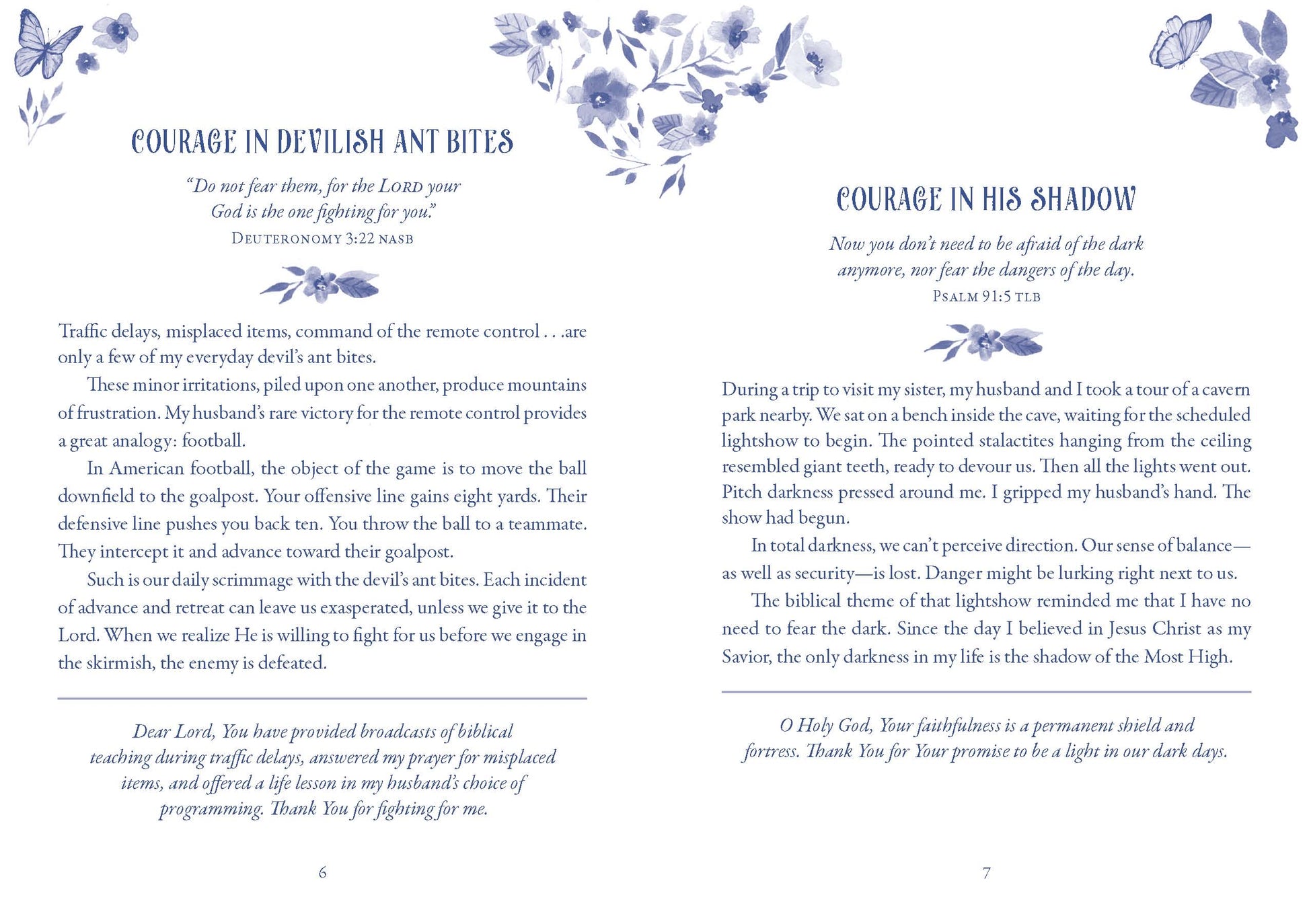 This lovely devotional guide features180 readings and prayers designed to help alleviate your fears as you learn to place your trust in the Almighty God, who gives you courage. Inspired by this promise from God's Word: "Be strong. Take courage. . .because God, your God, is striding ahead of you. He’s right there with you. He won’t let you down; he won’t leave you” (Deuteronomy 31:6 MSG), Fear Less, Pray More reinforces the truth that with God, you can live courageously every single day—whether you fear the unknown, aging, rejection, losing a loved one, being alone, or something more.