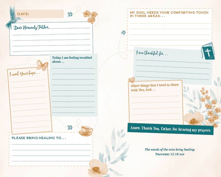 This unique prayer journal is an engaging and creative tool to help bring hope and healing to your heart as you experience the power of prayer. Each spread guides you to write out thoughts, ideas, and lists. . .creating a specific "map" for you to follow as you talk to God. Each map includes a spot to record the date, so you can look back on your prayers and see how God has worked in your life. The Prayer Map for Hope and Healing will not only encourage you to share your deepest needs with God. . .it will also help you build a healthy spiritual habit of continual prayer for life!