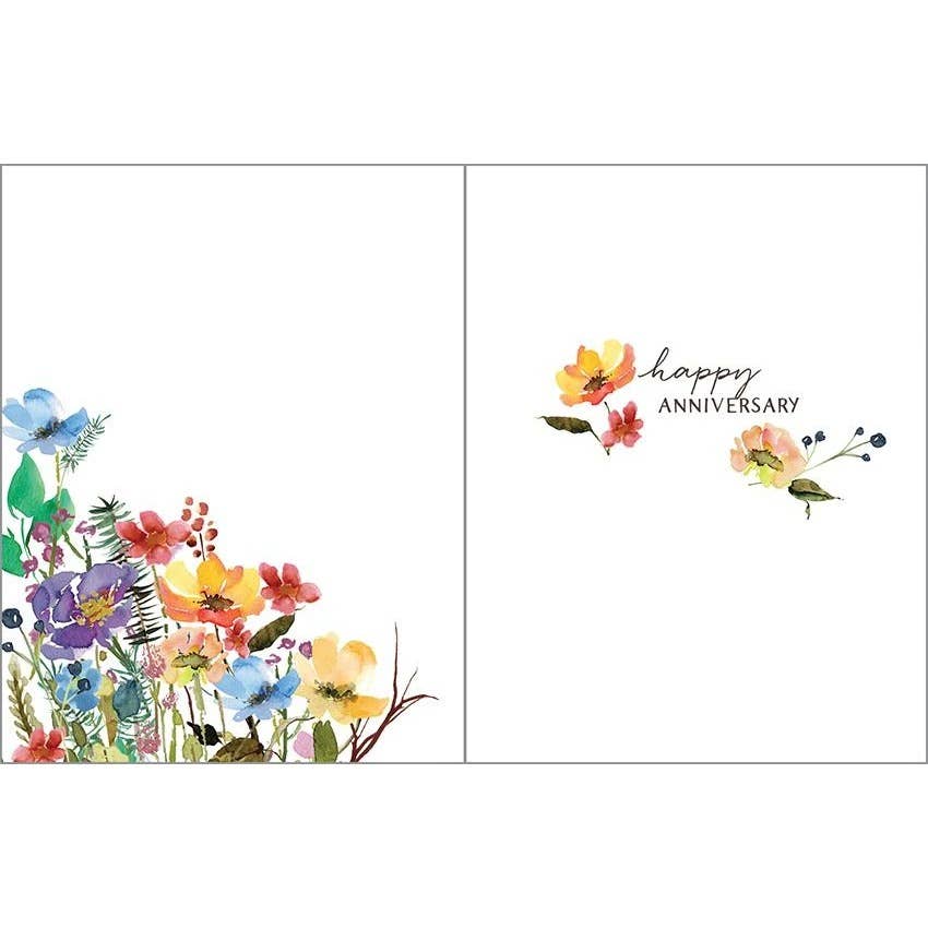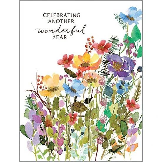 Greeting card with envelope. Celebrating another wonderful year, happy anniversary. Embellished with gold foil. Folded size: 4.25 x 5.5". Art by Amylee Weeks, MHS Licensing. Printed on FSC Certified paper in the USA.