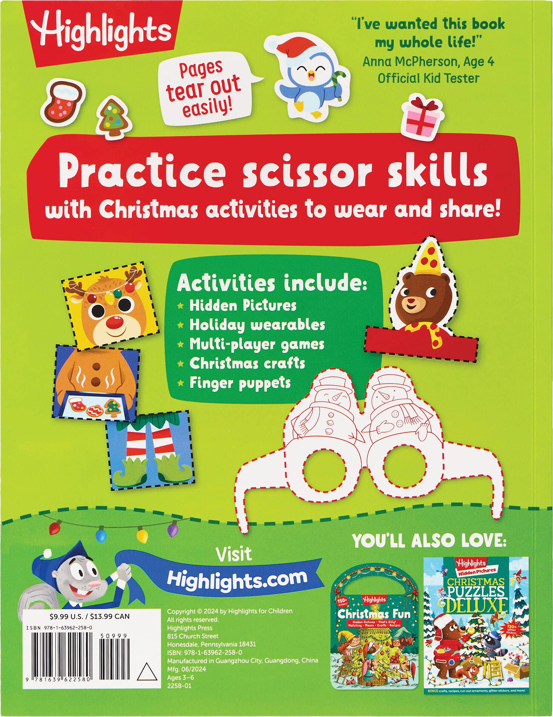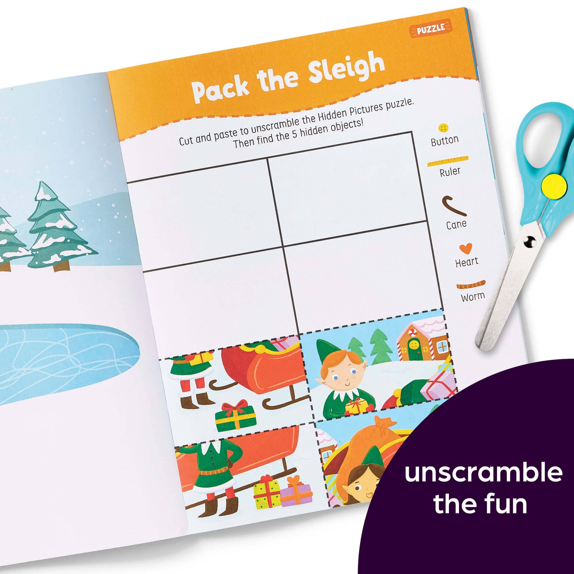 Get in the Christmas spirit through dozens of scissor activities, like Hidden Pictures puzzles, holiday wearables, finger puppets, and more.