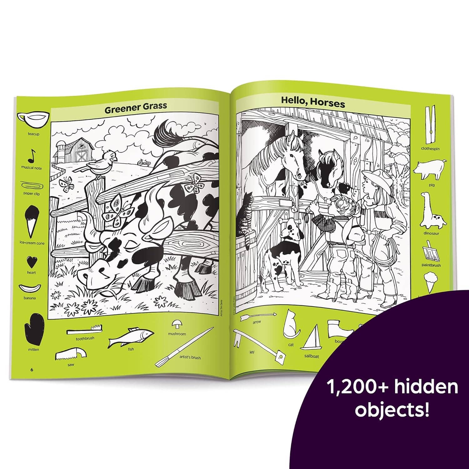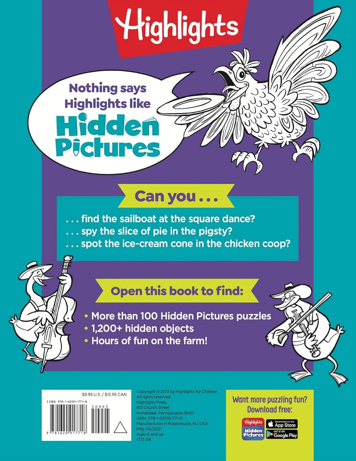Find hours of fun on the farm in this Hidden Pictures book! Always a kid favorite, the farm theme will delight puzzlers 6 and up as they search for over 1,200 objects hidden in classic black-and-white scenes.