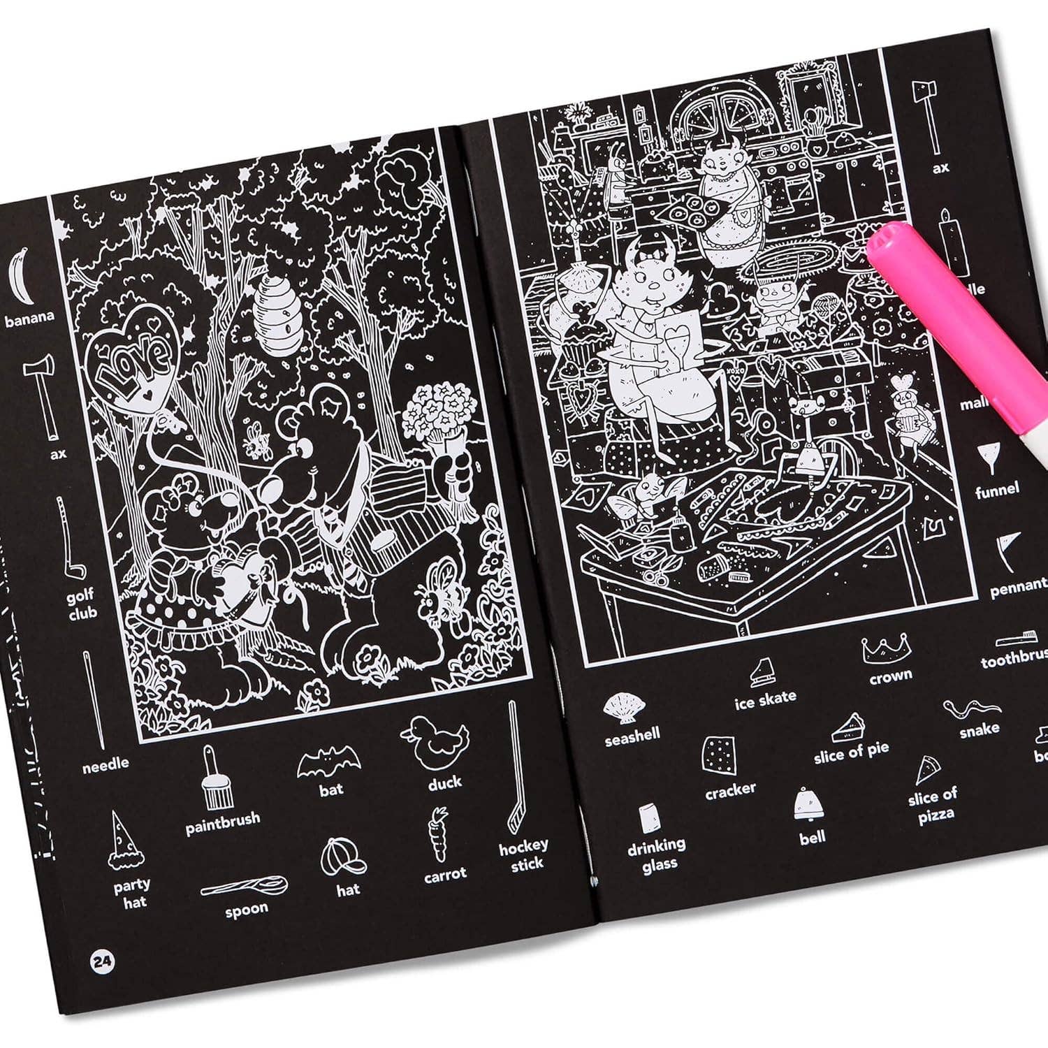 A perfect Valentine’s Day gift for young puzzlers, this collection of Hidden Pictures puzzles offers a unique puzzling experience! Kids can use the included neon pink highlighter to find over 300 valentine-themed hidden objects and create fluorescent scenes.