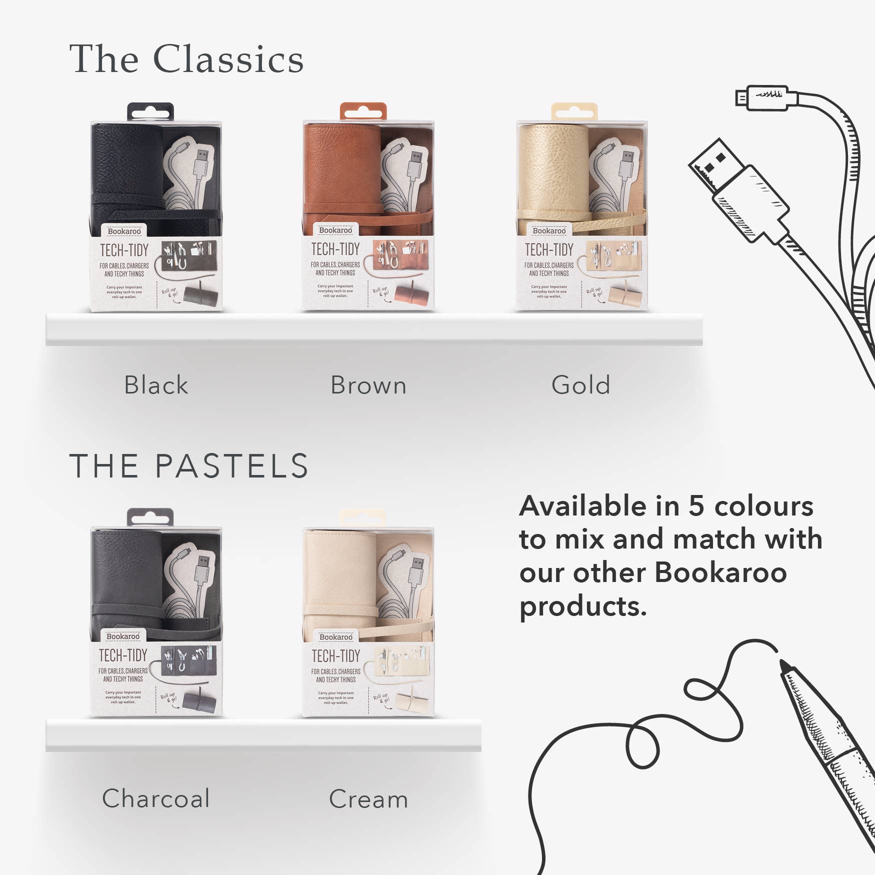 Rolls up and neatly stores your cables, chargers, and techy things. This smart versatile roll-out case is designed to neatly hold your cable spaghetti in the most stylish un-techy looking way.