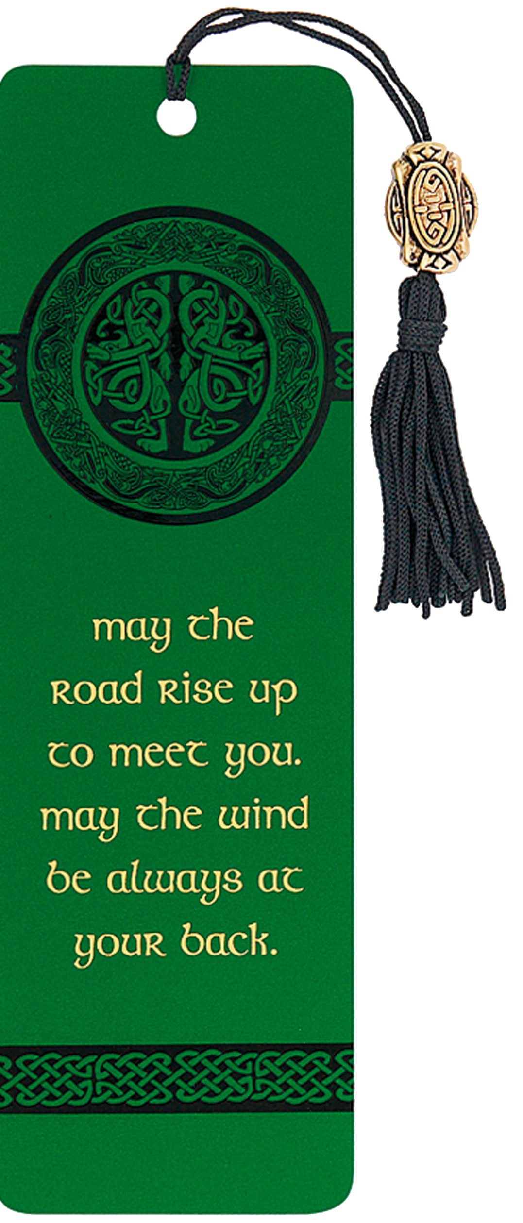 ''May the road rise up to meet you, may the wind be always at your back.'' Keep your place in your favorite book with this beautiful and uplifting bookmark. Its Celtic design and classic Irish blessing combine with gold foil accents, gloss highlights, a silky black tassel, and a matching gold bead. Bookmark is printed on sturdy, smooth-finish card stock. Measures 2-1/2'' wide x 7-1/8'' high. Beaded bookmark comes packaged in a protective clear plastic sleeve. Warning: Choking hazard, small parts. Not for children under 3 years.