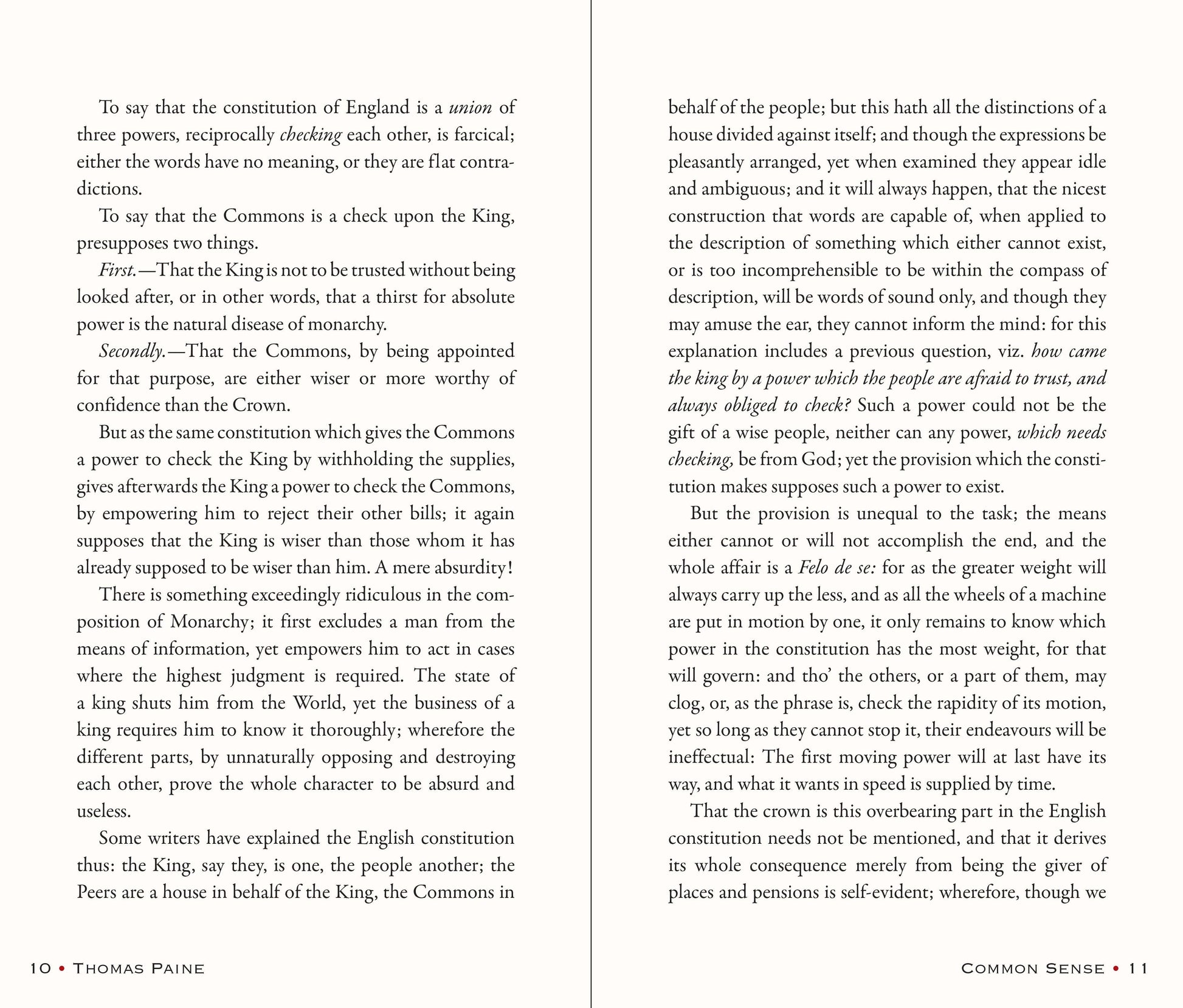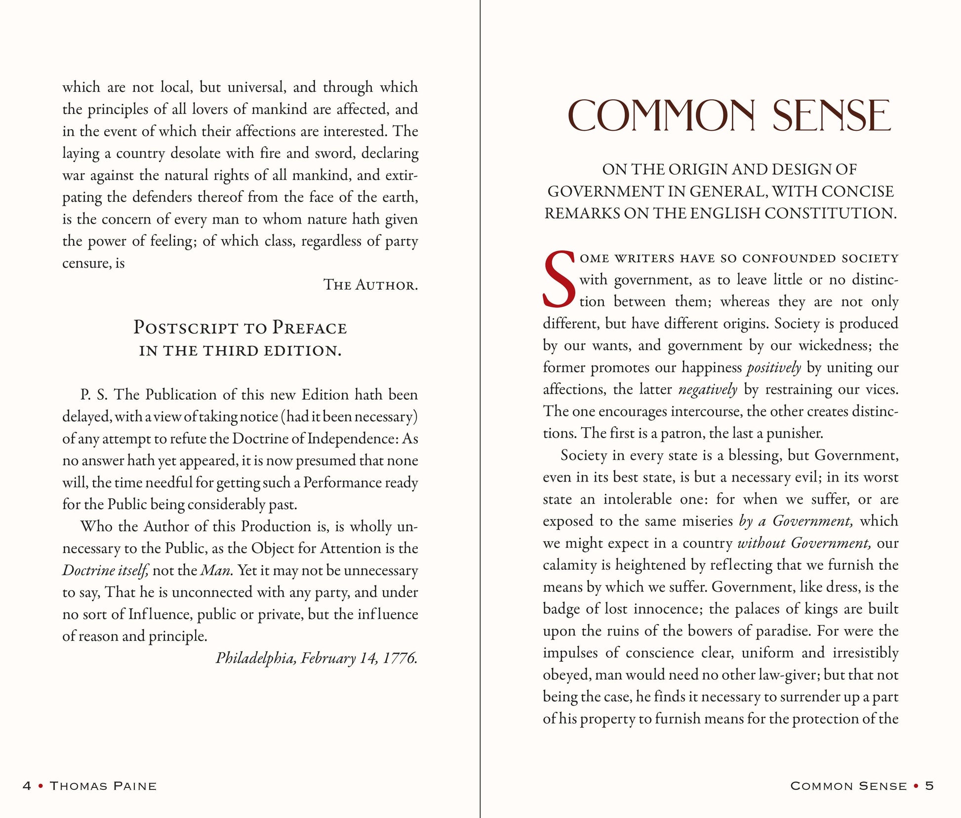 This keepsake edition presents Thomas Paine's persuasive and impassioned case for America's independence from Great Britain. Published in 1776 and destined to become an important piece of historic literature, Common Sense presented influential moral and political arguments to encourage common people in the Thirteen Colonies to fight for egalitarian government. Elegant presentation: Beautiful hardcover gift edition is embossed and embellished with gold foil. Each turn of the page is accentuated by gilded-gold edges that catch the light. Preserving history: Printed on premium acid-free archival-quality paper for longevity. Designed for portability: Compact volume measures 4-1/2'' wide x 7-1/2'' high. 72 pages encapsulate the essence of America's foundational principles. An indispensable addition to any personal or professional library.